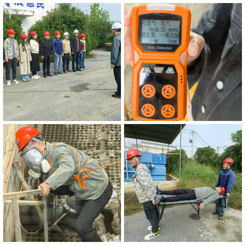 南陵水務組織有限空間作業(yè)救援應急演練活動。演練開始前,公司組織全體員工進行了有限空間作業(yè)安全知識培訓,并進行演練前準備工作,嚴格執(zhí)行“先通風、再檢測、后作業(yè)”的安全生產(chǎn)原則。